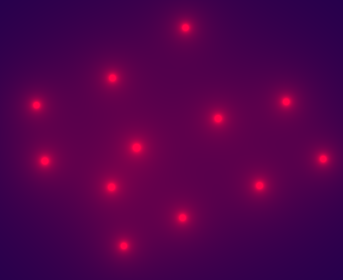Exhibition of 2D heat propagation. Similar to Donny, here I collect the last 128 mouse clicks using Javascript and send them as uniforms to GPU. Here click times matter. It's an incomplete version so you might see some unexpected behaviours.