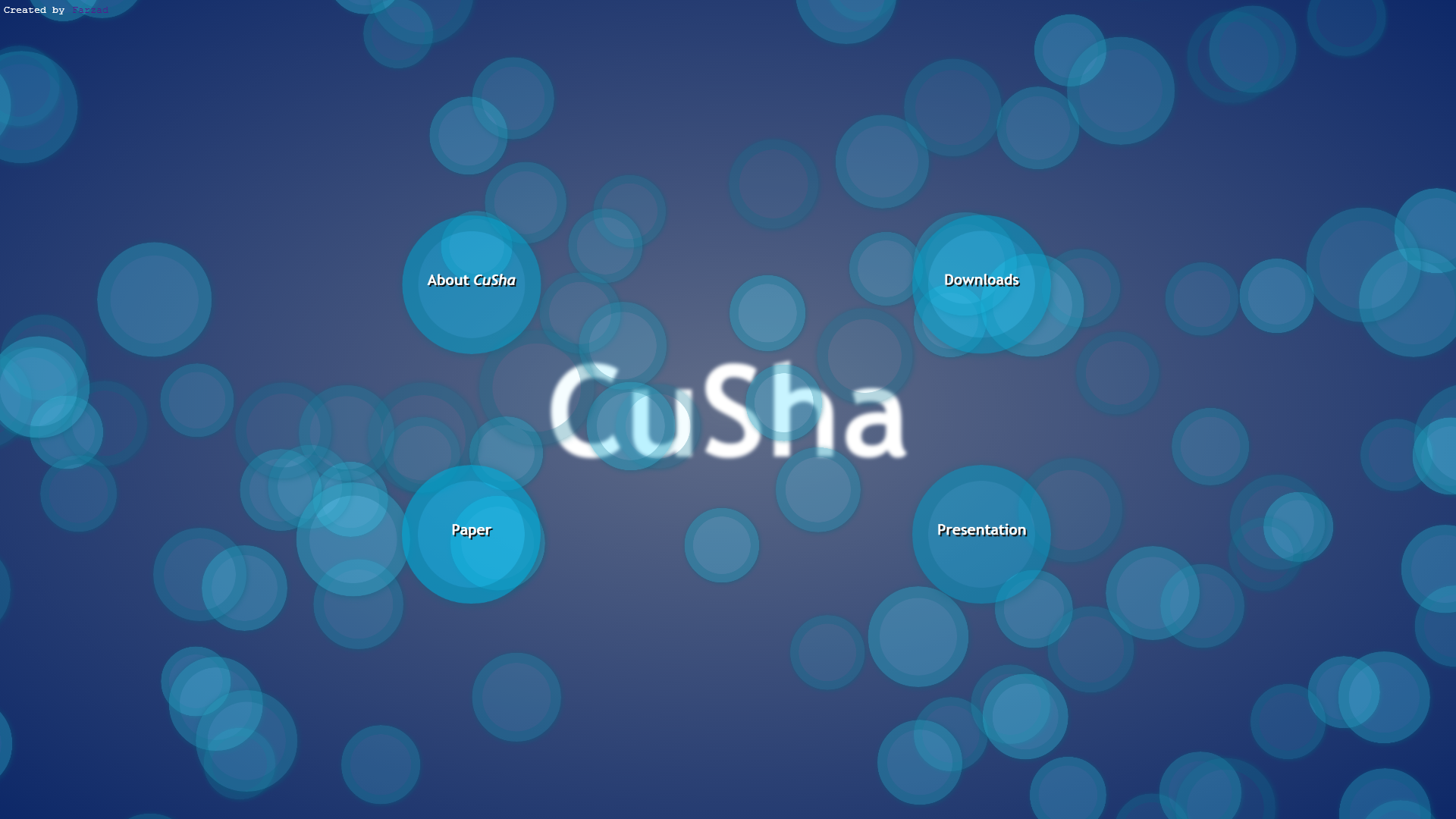 After the acceptance of CuSha paper, I created this page using Three.js CSS 3D renderer in order to use it as the CuSha page. But before I finalize it, I changed my mind because 1) it was very slow on some browser-OS combinations, and 2) the placement of items was depending on the aspect ratio of the page-viewer screen.