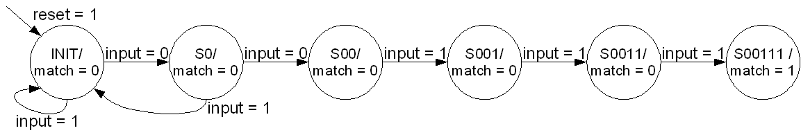 The FSM to match a pattern from a stream can be modeled in the following