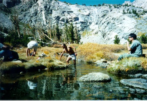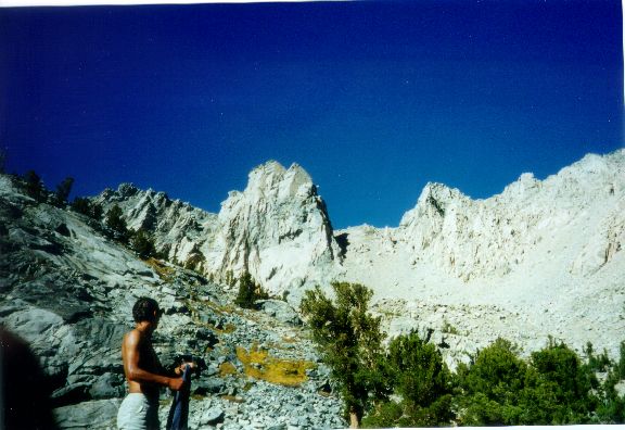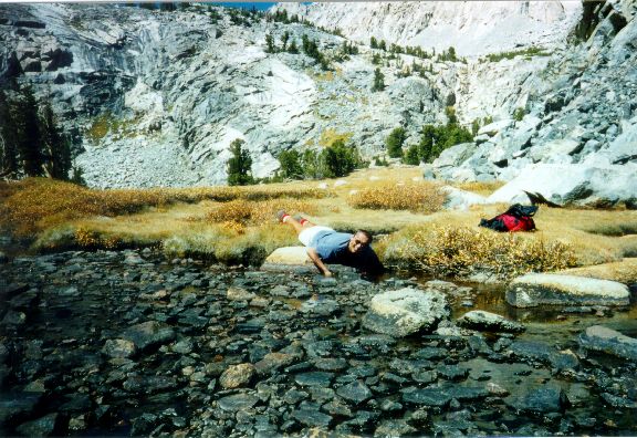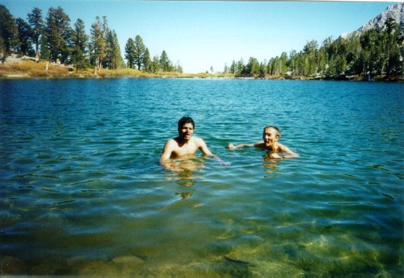 On Sunday, we hiked to Kearsage Pass, passing several gorgeous lakes on our way. We reached the pass around noon. We made it, over 29,000 feet without oxygen! On the way back we stopped at one lake for a swim , brrr.