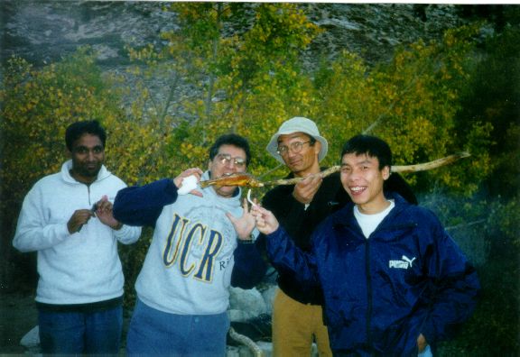 On Saturday, we hiked to Golden Trout Lake. It's a steep 5 mile hike. We made a few stops to rest, and take pictures or fish , fish , or admire the views . We reached the lake around 2pm. We started heading back around 3pm. We reached the campground around 4:30pm, set the camp, had dinner and went to bed.