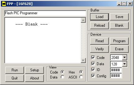 Free flash PIC Programmer (FPP) - Installation and Setup Download The download below is freely available and downloadable from David Tait's website. The download below is provided here for convience. For system requirements, further details, updates, or patches consult the appropriate webpage. There are many freely available software programs to program various PIC models on the internet. This one was selected because it supported the PIC16F628 and operated under Windows 2000 and Windows XP. Installation/Configuration